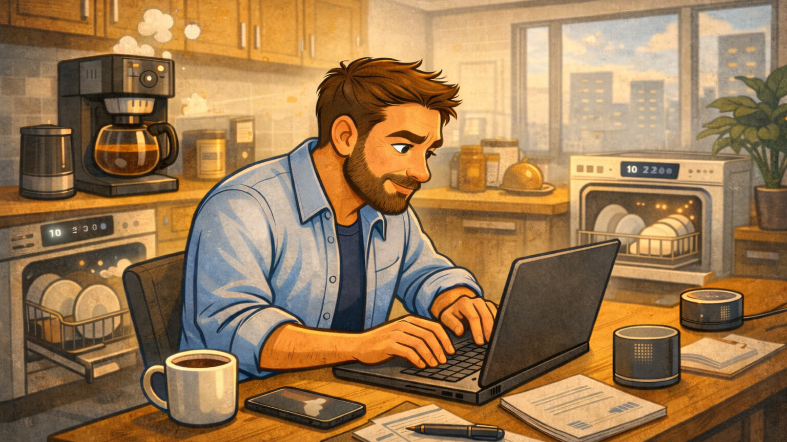 Så neste gang kaffetrakteren piper, en varsling tikker inn fra oppvaskmaskinen og en beslutning tas mellom to kaffekopper – husk at du sitter midt i en kommandosentral. Hjemme.